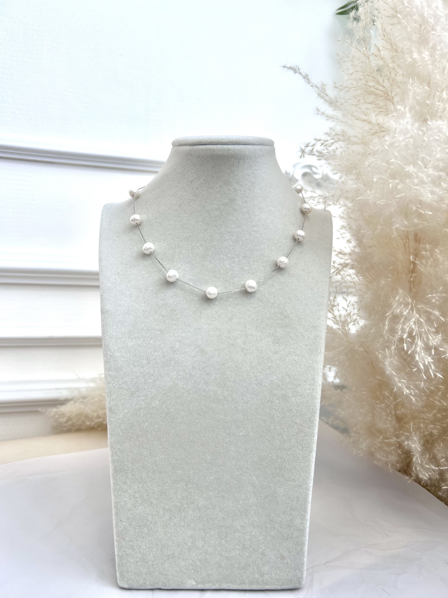 → Колье серебро 925, жемчуг речной белый ж45-280* д.7,5мм