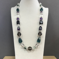 Колье раухтопаз, горный хрусталь, флюорит, аметист 260
